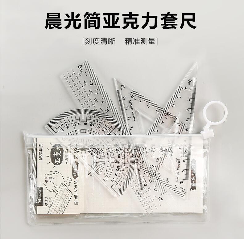 晨光文具 透明套尺 亞克力四件套15cm直尺三角板量角器學(xué)生用考試繪畫專用制圖測量隨身便攜多功能幾何工具